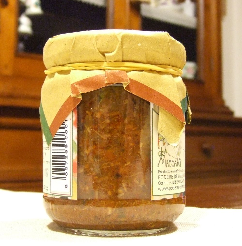 Ingredients: meat 70/80%, tomatoes, spices, walnuts, pine nuts, oilio Maccanti Tuscan extra virgin olive oil, salt, pepper, herbs. No dyes or preservatives. Handicraft Product, pasta specialties and bruscetta.
